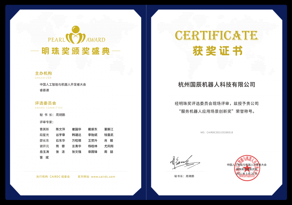 國(guó)辰公共服務(wù)機(jī)器人榮獲CAIRDC丨2021年“明珠獎(jiǎng)”